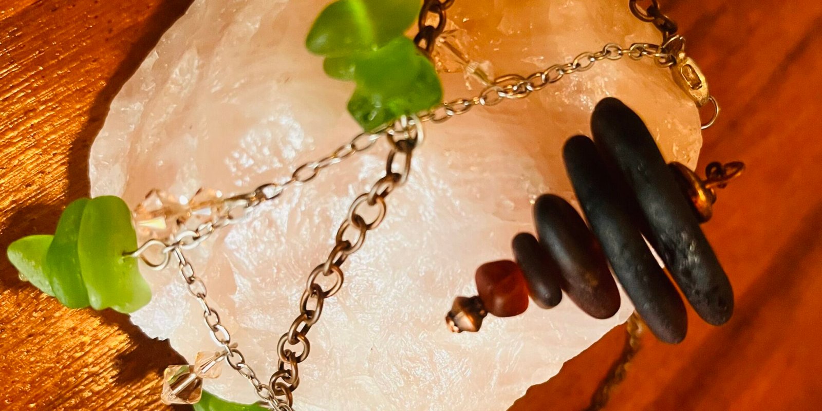 At Oceans Treasure PV, our sea glass is picked by hand, cleaned, sorted, left in its natural state, created, and designed into lovely pieces of jewelry. All pieces are picked by us and handled with love and care!