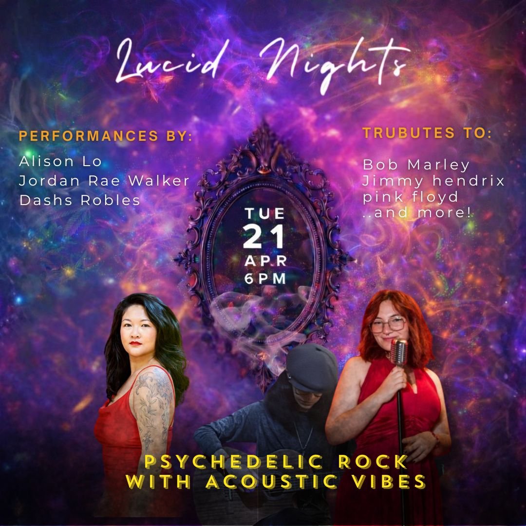 Join us for Lucid Nights — a unique experience featuring some of Vallarta’s most loved voices: Alison Lo, Jordan Walker, and Dashs Robles, as they bring you immersive tributes to legends like Bob Marley, Jimi Hendrix, Pink Floyd, and more.